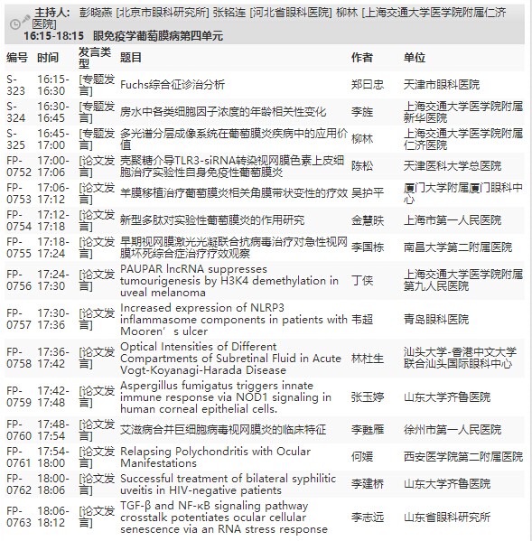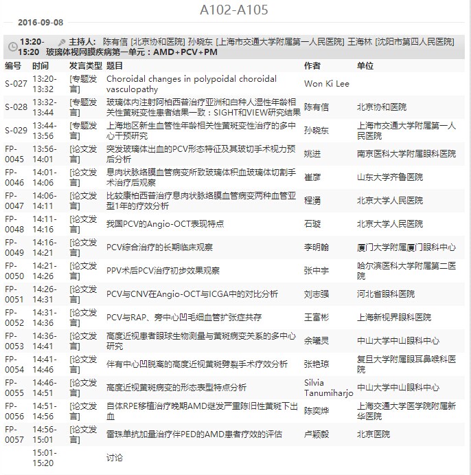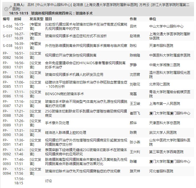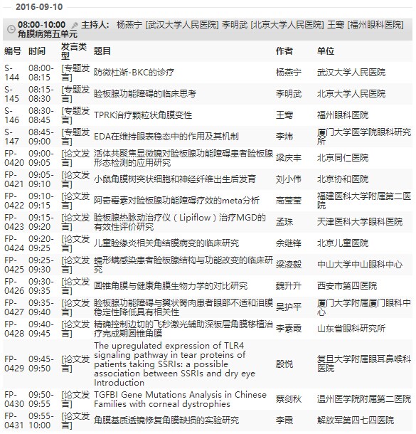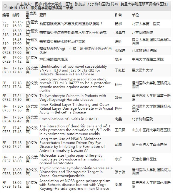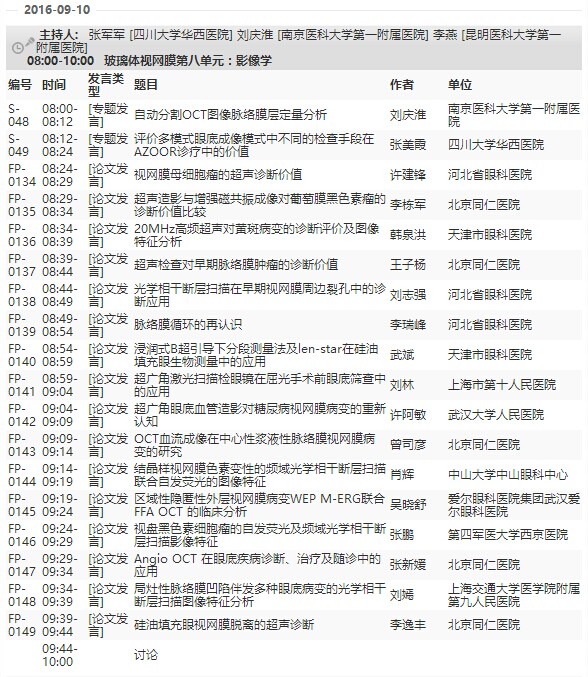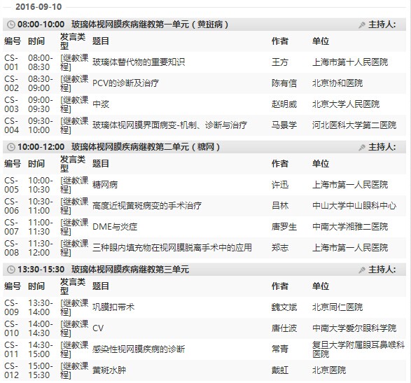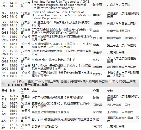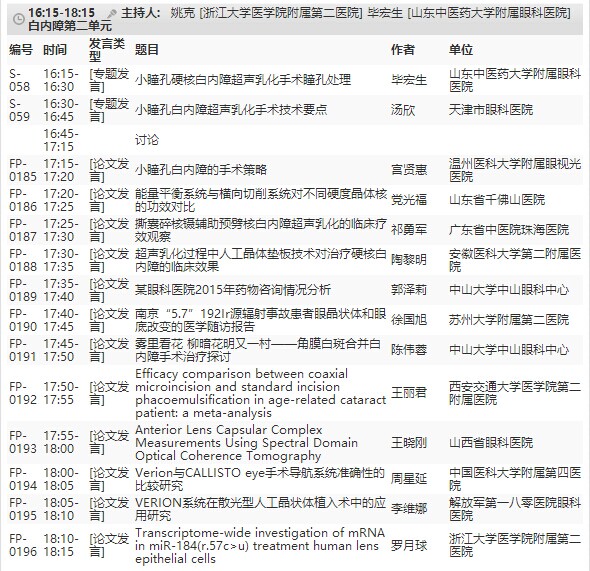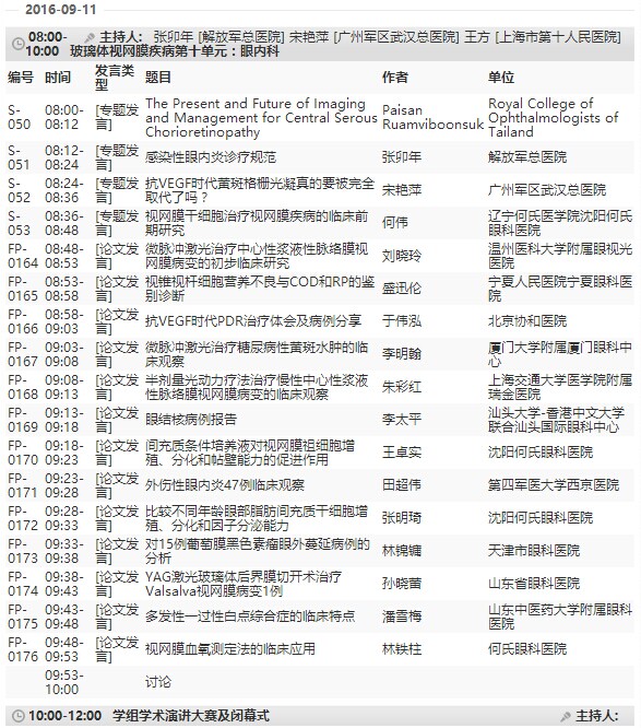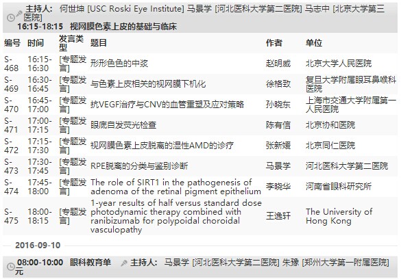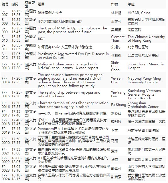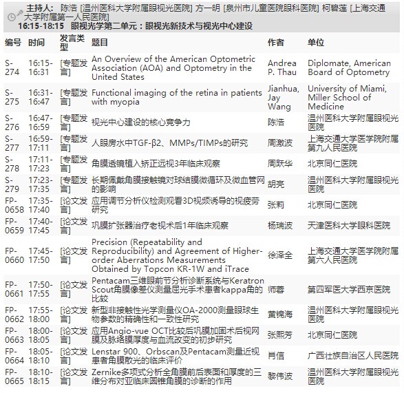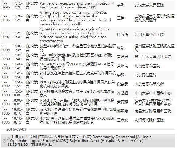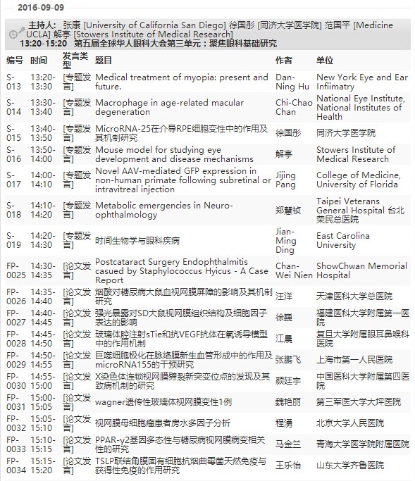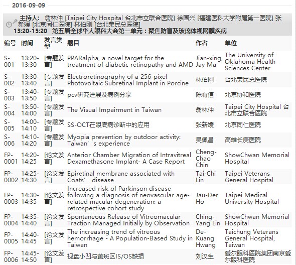 新闻中心 您的当前位置:首页 > 新闻中心 > 中华医学会第二十一次 中华医学会第二十一次全国眼科学术大会暨第五届全球华人眼科学术大会详细日程表------------------------------------2016-08-22 发布时间:2016-08-22 来源: 作者: 中华医学会第二十一次全国眼科学术大会 暨第五届全球华人眼科学术大会详细日程 更多新闻请点击: http://www.yanke360.com/news/