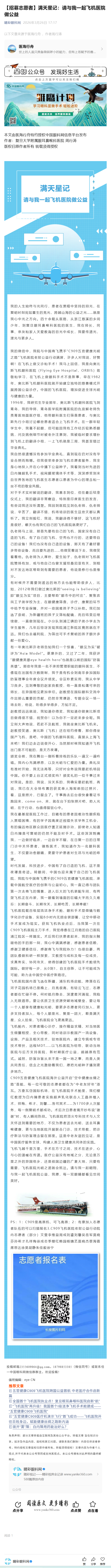 【招募志愿者】满天星记:请与我一起飞机医院做公益------2026-3-26