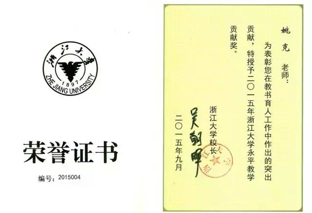 本届“永平奖”已经是第四届,姚克教授获得了“永平教学贡献奖”,这也是姚克教授继“2006年浙江大学教书育人标兵”、“2005~2006年度浙江省高校‘三育人’先进个人”及2007年、2014年“浙江大学医学院教学突出贡献奖”之后的又一项教学大奖。