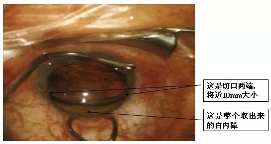 话得说到30年前了,那个时候白内障手术是这么做的,做一个大大的切口,拿掉整个混浊的晶状体(白内障),然后眼睛就缺了一个晶状体(就像照相机缺了一个镜头),眼前只能看个大概,得配上厚厚的凸透镜才能看得见。这样的情况,当然得要完全看不见后手术,患者才能感觉手术后视力有那么一点点改善。