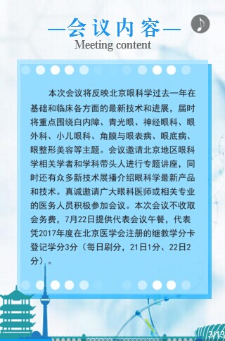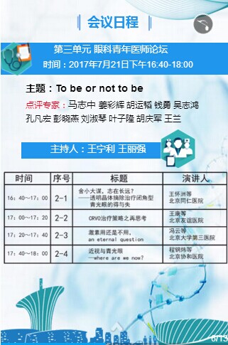 新闻中心 您的当前位置:首页 > 新闻中心 > 【会议流程】2017北京 【会议流程】2017北京地区眼科学专业学术年会(07.21-07.22北京)-------------2017-07-11 发布时间:2017-07-11 来源: 作者: 原文链接 更多新闻请点击: http://www.yanke360.com/news/