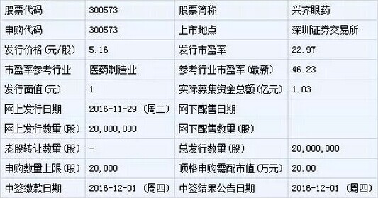 兴齐眼药12月8日上市发行基本