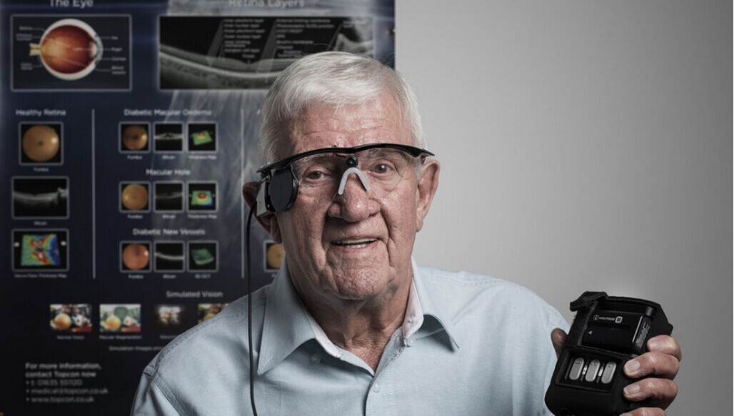日本东京大学外科博士勿怪幸介绍说,这位老人成为了世界第一个生物视力和机械视力结合的人。