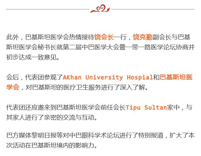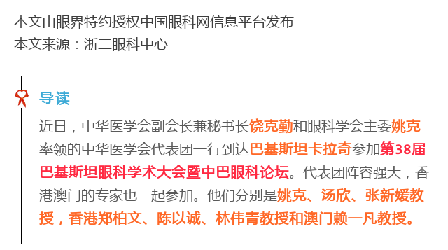 新闻中心 您的当前位置:首页 > 新闻中心 > 跨越5000公里 中国眼 跨越5000公里 中国眼科一带一路巴基斯坦行 ---------------2017.08.23 发布时间:2017-08-23 来源: 作者: 原文链接 更多新闻请点击: http://www.yanke360.com/news/