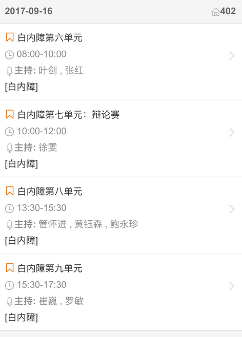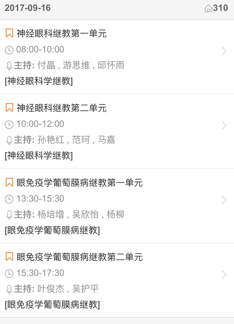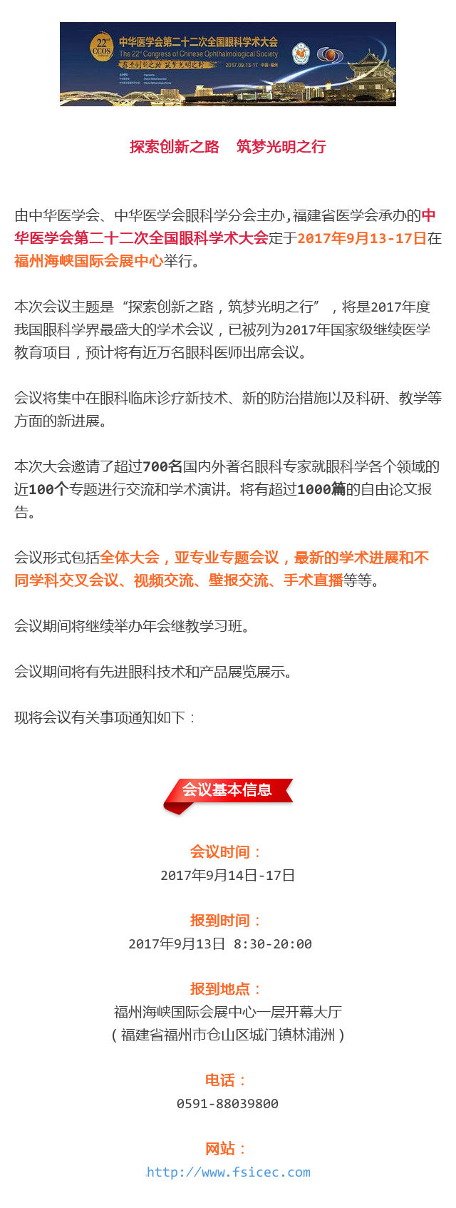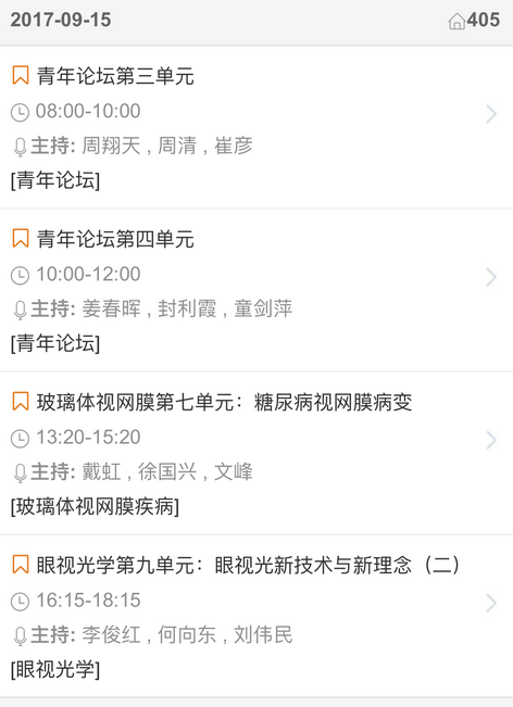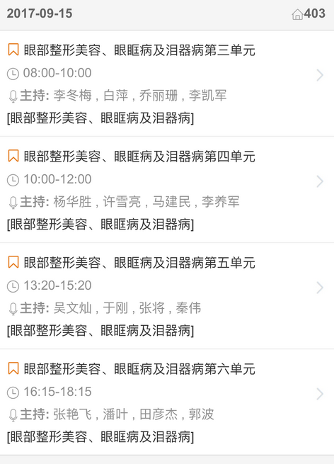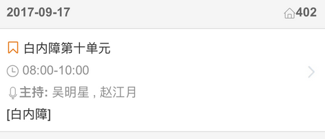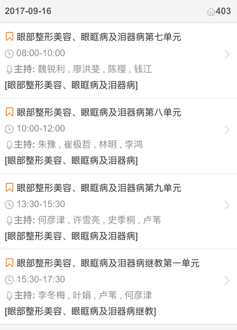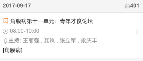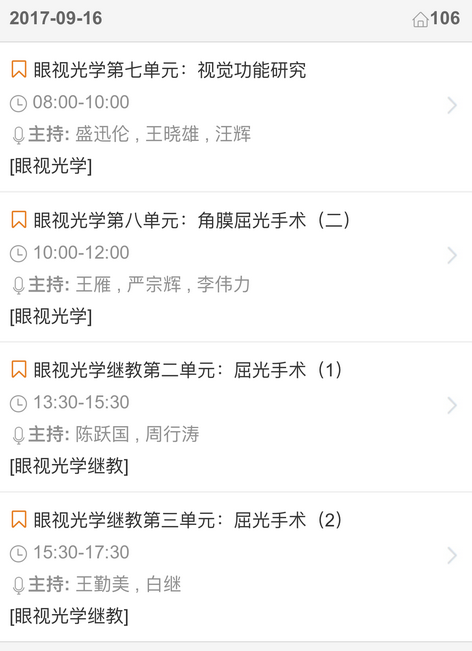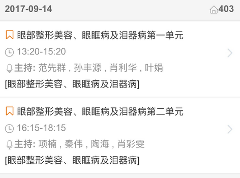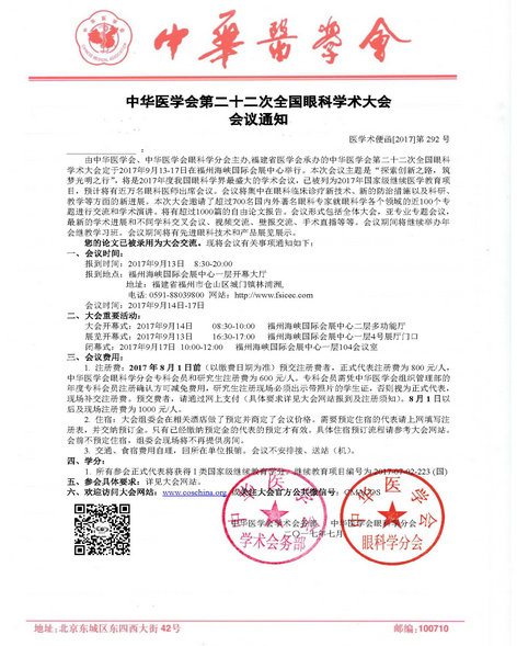 新闻中心 您的当前位置:首页 > 新闻中心 > 【聚焦年会】2017全国 【聚焦年会】2017全国眼科年会日程一览表(福州09.13-09.17)---------------2017-08-23 发布时间:2017-08-23 来源: 作者: 2017福州年会日程查询 更多新闻请点击: http://www.yanke360.com/news/