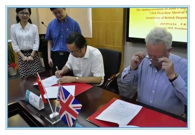 此次国际合作项目签约仪式,由中华眼科学会眼视光学组组长、温州医科大学校长瞿佳教授与英国验配视光师协会(ABDO)主席Anthony Garrett爵士共同签署。是继今年6月,温州医科大学副校长、附属眼视光医院院长吕帆访问团对欧洲著名的高等院校、高科技企业、机构及眼科医院(包括ABDO)进行访问后的又一项进展和突破。
