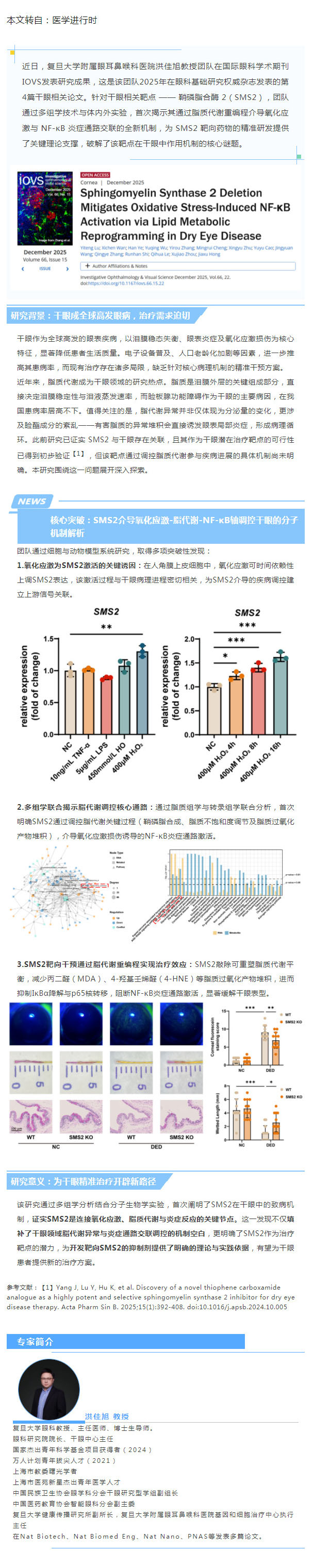 复旦大学洪佳旭教授团队揭示干眼脂质代谢-炎症调控新网络--2025-12-10 发布时间:2025-12-10 来源: 作者: