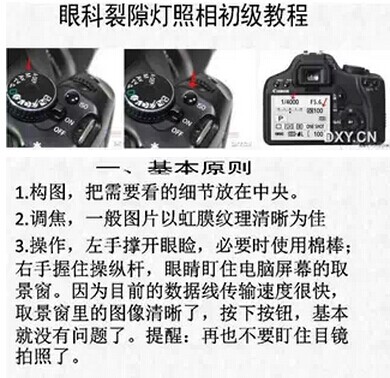 新闻中心 您的当前位置:首页 > 新闻中心 > 【图文】眼科裂隙灯照 【图文】眼科裂隙灯照相初级教程-------------------------------------------------2015-09-21 发布时间:2015-09-21 来源: 作者: 本文来自:沧州眼科医院 作者:周文宗 高手没有捷径,都是实践中练出来的。 更多新闻请点击:http://www.yanke360.com/news/