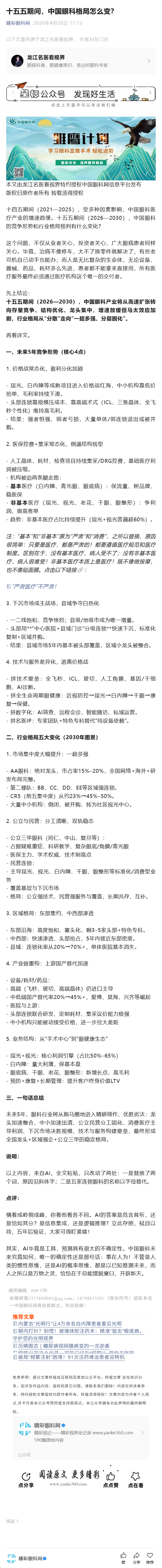 十五五期间,中国眼科格局怎么变?-----2026-4-28