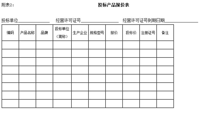 本次招标仅对附表(二)所列的招标目录内的内容进行招标及评标,目录中的编码为本次招标的临时编码,投标单位填表制作时应准确填写并与产品名称相对应。投标单位可选择招标目录的一个产品或多个产品应标,应标的产品应在经营许可证许可范围以内。