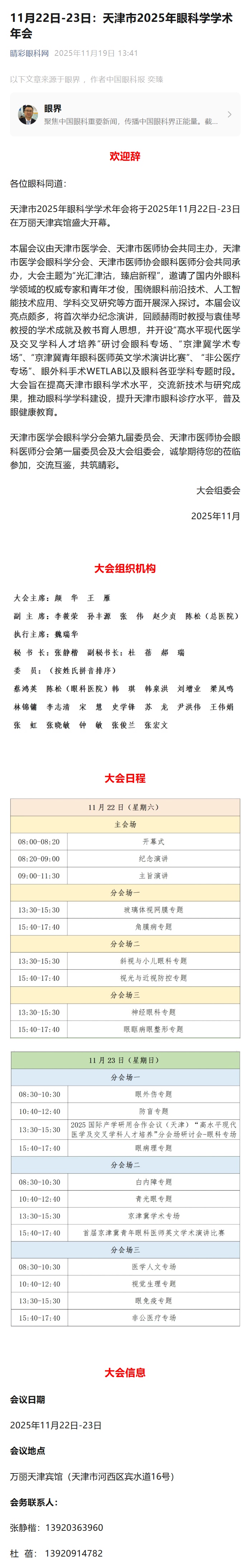 新闻中心 您的当前位置:首页 > 新闻中心 > 11月22日-23日:天津 11月22日-23日:天津市2025年眼科学学术年会-----------2025-11-19 发布时间:2025-11-19 来源: 作者:
