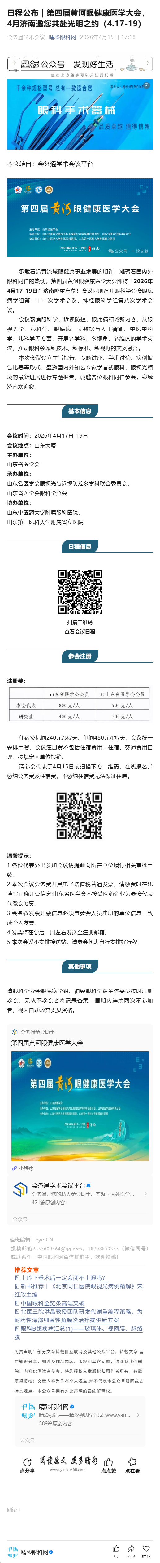 新闻中心 您的当前位置:首页 > 新闻中心 > 日程公布 | 第四届黄 日程公布 | 第四届黄河眼健康医学大会,4月济南邀您共赴光明之约(4.17-19)-------2026-4-15 发布时间:2026-04-15 来源: 作者: