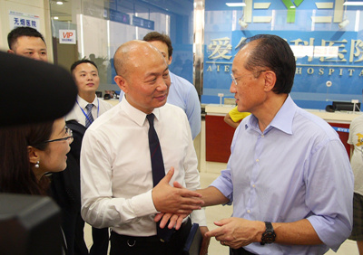 金墉先生是7月7日抵达中国开始访问的。爱尔眼科是其在中国为期三天参观考察行程中的重要一站。昨天在北京与习近平主席、李克强总理的会晤中,金墉先生表示,世界银行会一如既往“积极参与中国医疗卫生体制改革进程,以提高中国国民的健康水平”。