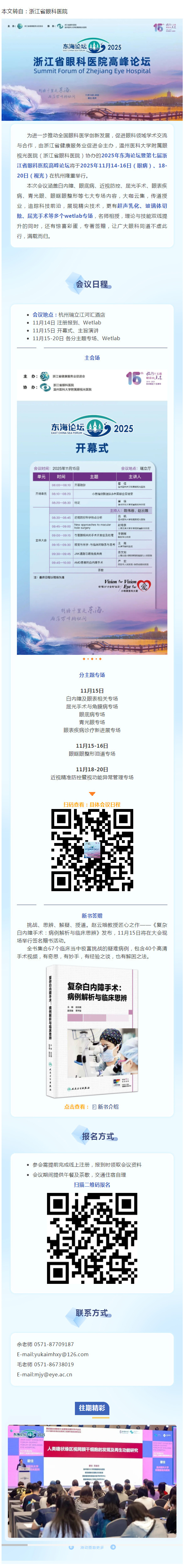 11.14-20杭州 | 东海论坛2025·浙江省眼科医院高峰论坛第三轮通知--2025-11-11 发布时间:2025-11-11 来源: 作者: