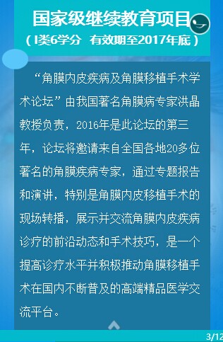 新闻中心 您的当前位置:首页 > 新闻中心 > 2016第三届角膜内皮疾 2016第三届角膜内皮疾病及角膜移植手术学术论坛---------------------------------------------2016-09-20 发布时间:2016-09-20 来源: 作者: 更多新闻请点击: http://www.yanke360.com/news/