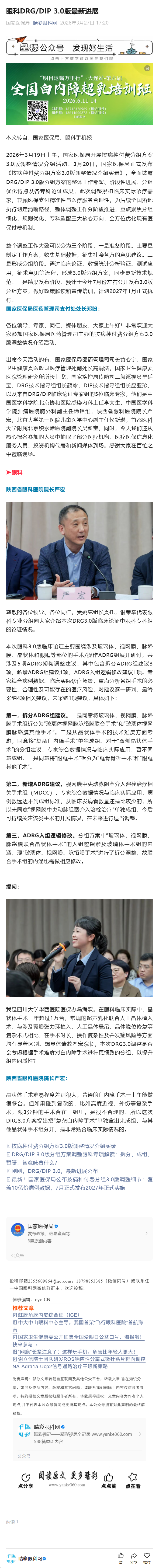 眼科DRG/DIP 3.0版最新进展----2026-3-27