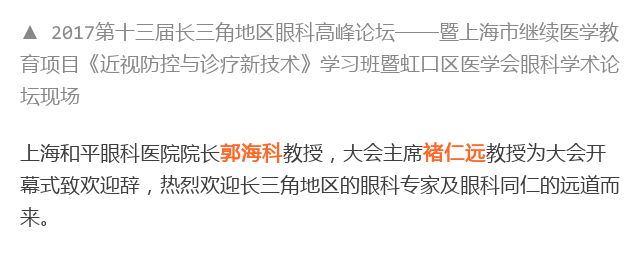 新闻中心 您的当前位置:首页 > 新闻中心 > 大咖云集 群星闪耀 | 大咖云集 群星闪耀 | 第十三届长三角地区眼科高峰论坛隆重召开 “和平眼科名医工作室”荣耀启航-------------------2017-07-25 发布时间:2017-07-25 来源: 作者: 原文链接 更多新闻请点击: http://www.yanke360.com/news/