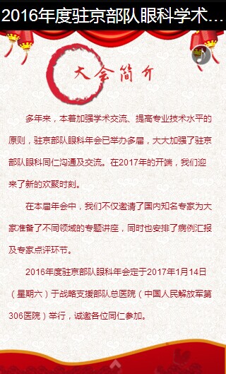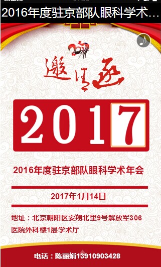 新闻中心 您的当前位置:首页 > 新闻中心 > 2016年度驻京部队眼科 2016年度驻京部队眼科学术年会(2017.01.14)-----------------------------------2017-01-09 发布时间:2017-01-09 来源: 作者: 原文链接 更多新闻请点击 : http://www.yanke360.com