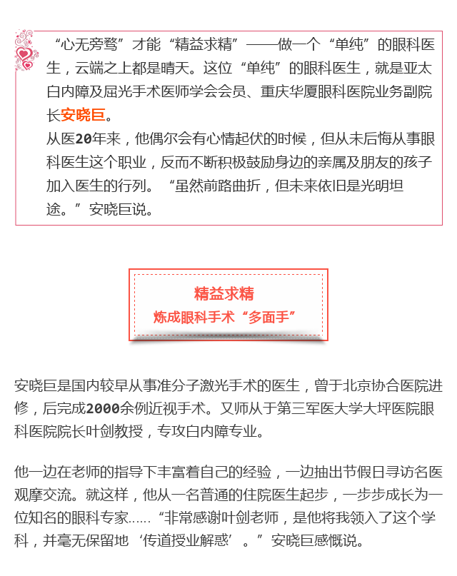 新闻中心 您的当前位置:首页 > 新闻中心 > 【华厦名医】安晓巨: 【华厦名医】安晓巨:“心无旁骛”方能“精益求精”,靠医术和医德收获口碑------------------2017-09-01 发布时间:2017-09-01 来源: 作者: 原文链接 更多新闻请点击: http://www.yanke360.com/news/