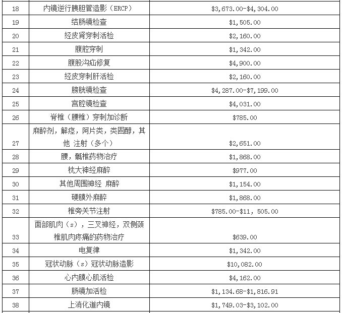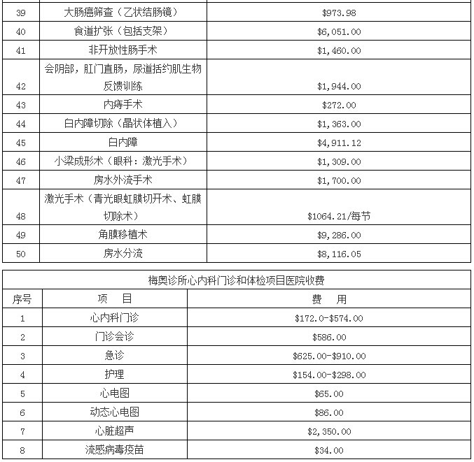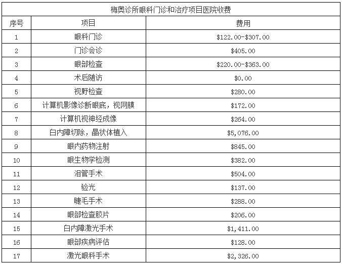以下是整理翻译的《梅奥诊所医疗费用价目表》: