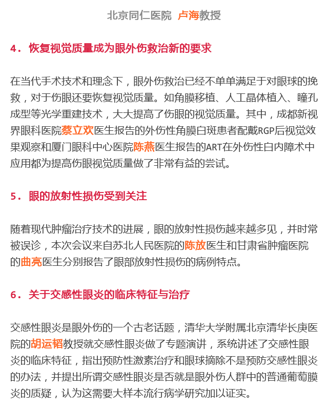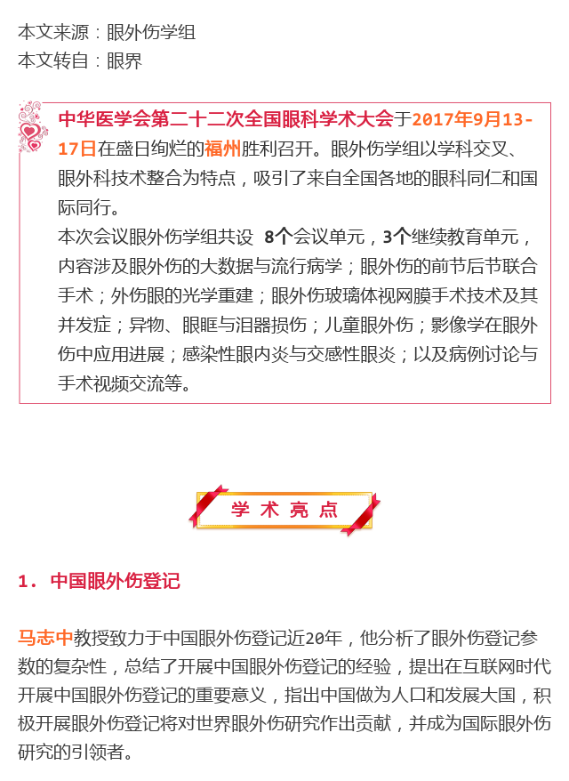 新闻中心 您的当前位置:首页 > 新闻中心 > 【年会回顾-眼外伤】C 【年会回顾-眼外伤】CCOS2017眼外伤学组学术亮点回顾-------------------2017-09-22 发布时间:2017-09-22 来源: 作者: 原文链接 更多新闻请点击: http://www.yanke360.com/news/