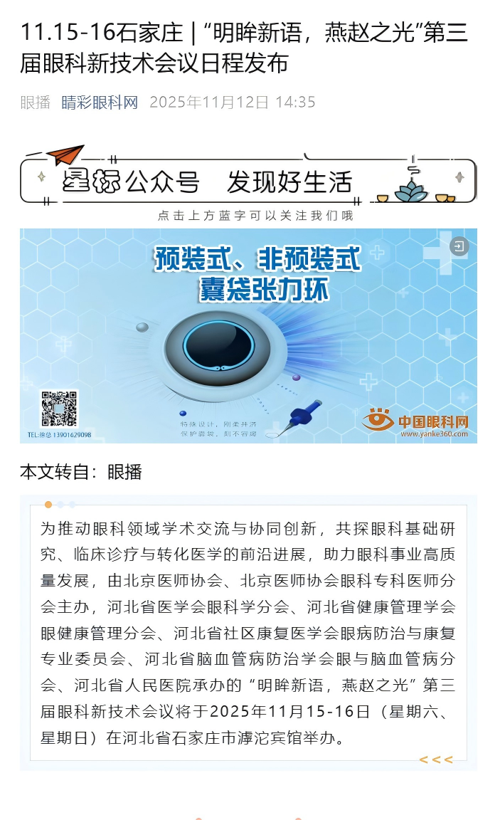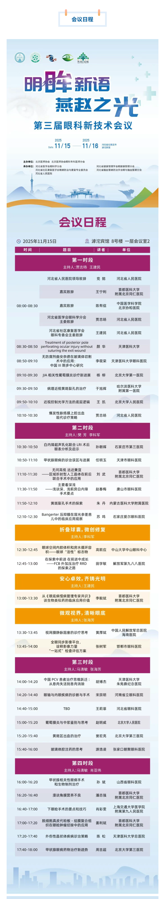 新闻中心 您的当前位置:首页 > 新闻中心 > 11.15-16石家庄 | “ 11.15-16石家庄 | “明眸新语,燕赵之光”第三届眼科新技术会议日程发布---------2025-11-12 发布时间:2025-11-12 来源: 作者: