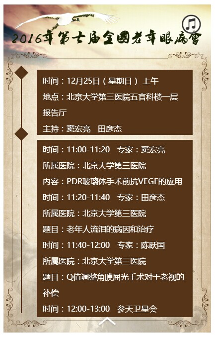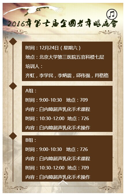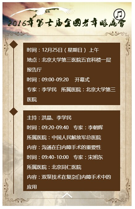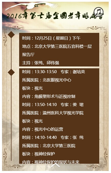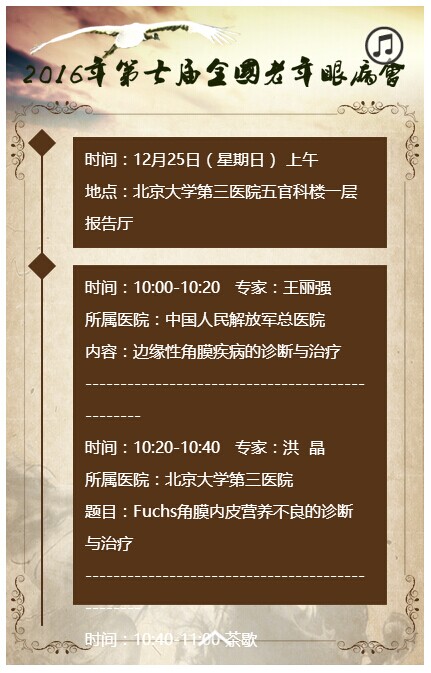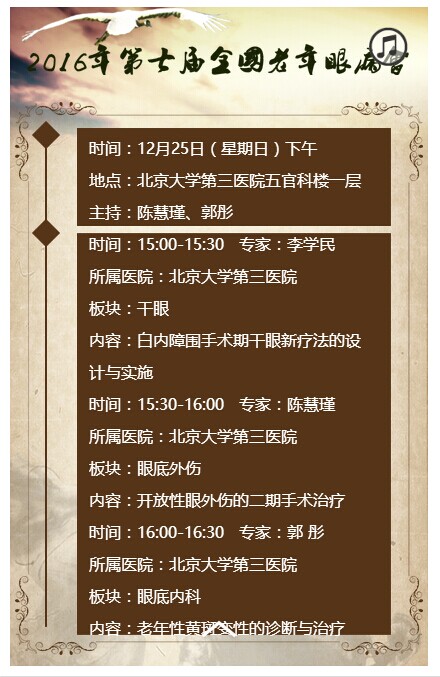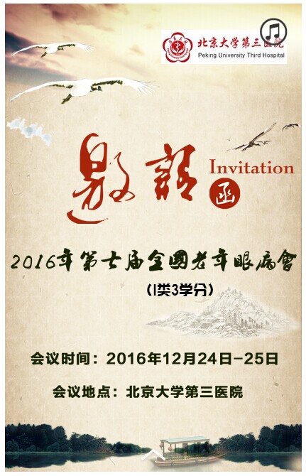 新闻中心 您的当前位置:首页 > 新闻中心 > 2016年第七届全国老年 2016年第七届全国老年眼病会-----------------------------------------------------2016-12-15 发布时间:2016-12-15 来源: 作者: 原文链接(MAKA)[内含报名页面] 更多新闻请点击: http://www.yanke360.com/news/