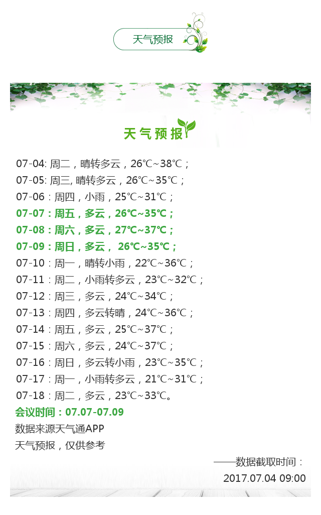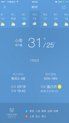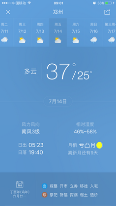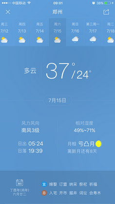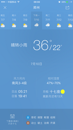新闻中心 您的当前位置:首页 > 新闻中心 > 【天气预报及会议路线 【天气预报及会议路线】河南省第二十三届眼科学术会议(07.07-07.09郑州)-------------------2017-07-04 发布时间:2017-07-04 来源: 作者: 附天气预报截图(来源天气通APP) 更多新闻请点击: http://www.yanke360.com/news/