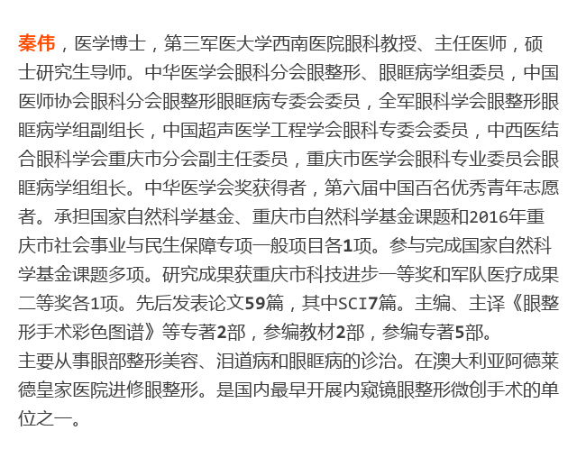 新闻中心 您的当前位置:首页 > 新闻中心 > 【眼科图谱】《眼整形 【眼科图谱】《眼整形手术彩色图谱》--------------------------------------2017-08-30 发布时间:2017-08-30 来源: 作者: ▲秦伟与主编David Xie(美国眼整形学会主席)合影 原文链接 更多新闻请点击: http://www.yanke360.com/news/