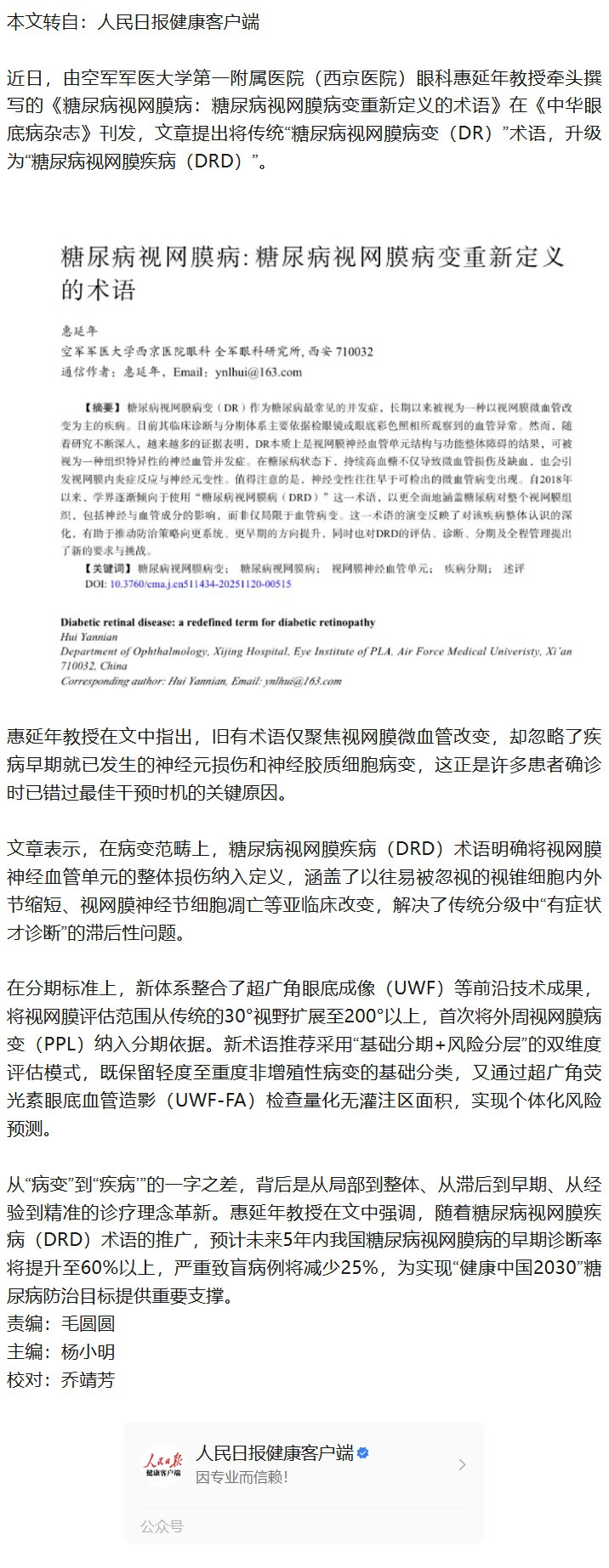 从“病变”到“疾病”,业界呼吁糖尿病视网膜病变改名---2025.12.22