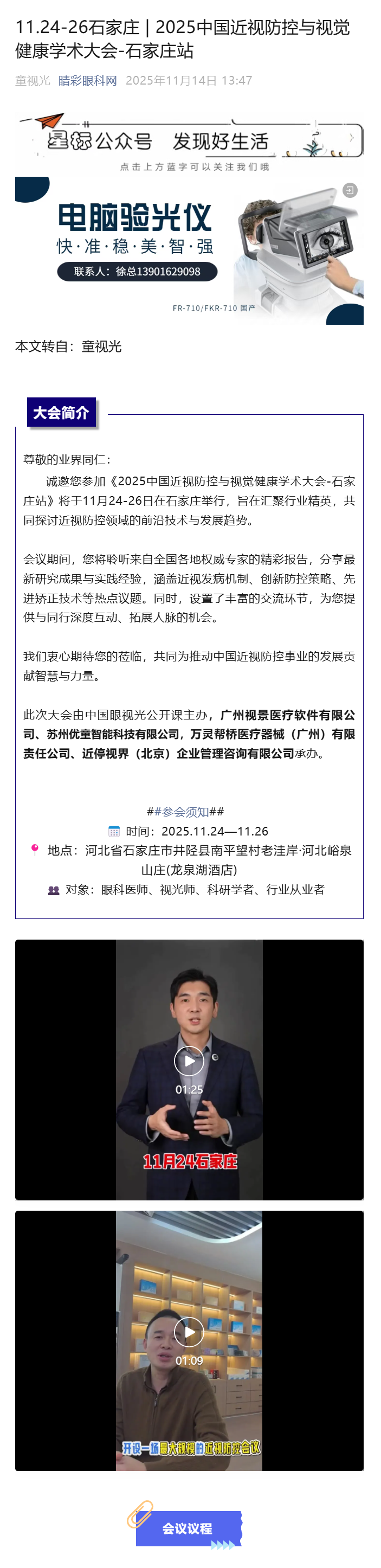 新闻中心 您的当前位置:首页 > 新闻中心 > 11.24-26石家庄 | 202 11.24-26石家庄 | 2025中国近视防控与视觉健康学术大会-石家庄站---------2025-11-14 发布时间:2025-11-14 来源: 作者: 原文链接