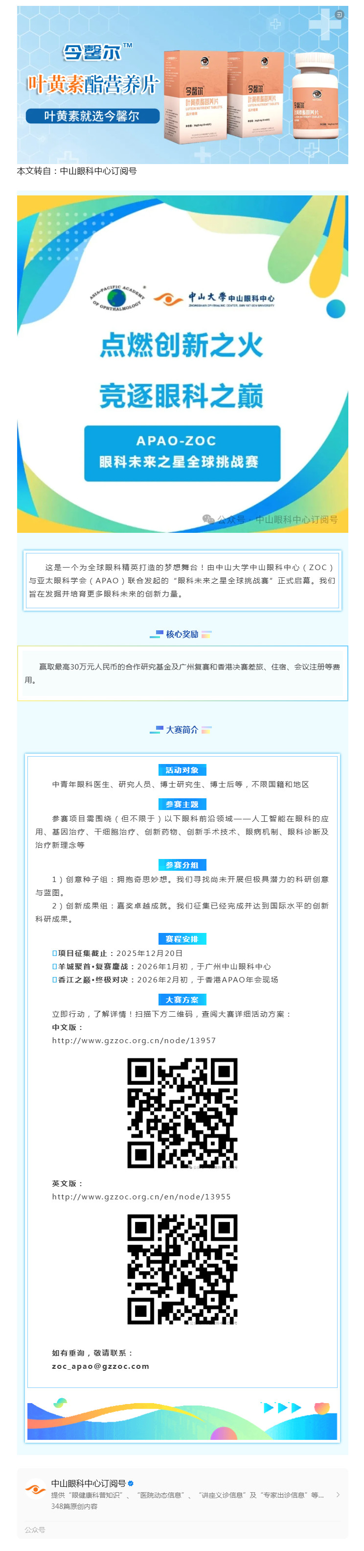 中山眼科中心/亚太眼科学会联合发起“眼科未来之星全球挑战赛”---2025-12-02 发布时间:2025-12-02 来源: 作者: