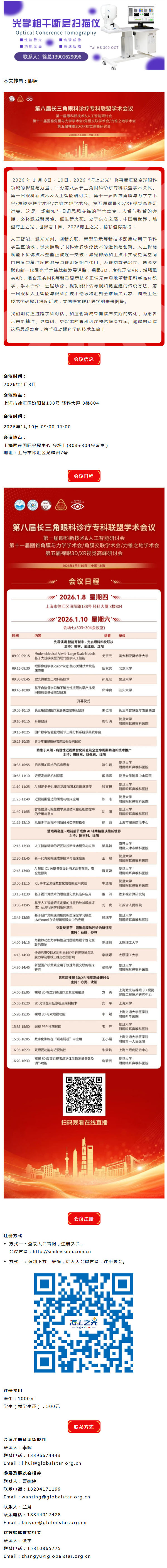 最新日程|第八届长三角眼科诊疗专科联盟学术会议 第一届眼科新技术&人工智能研讨会(1.8-10 上海)--2026-1-8 发布时间:2026-01-07 来源: 作者: