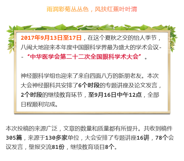 新闻中心 您的当前位置:首页 > 新闻中心 > 【聚焦年会】全国眼科 【聚焦年会】全国眼科年会神经眼科学组学术活动精彩回顾------------------2017-09-18 发布时间:2017-09-18 来源: 作者: 原文链接 更多新闻请点击: http://www.yanke360.com/news/