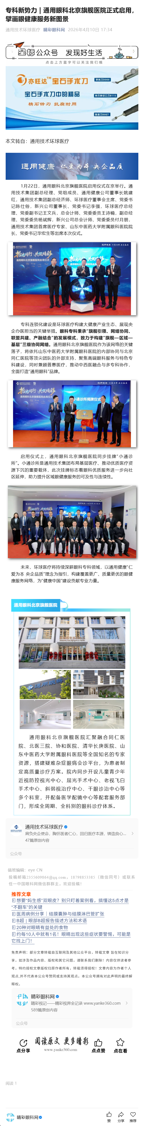 专科新势力 | 通用眼科北京旗舰医院正式启用,擘画眼健康服务新图景