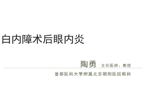 新闻中心 您的当前位置:首页 > 新闻中心 > 陶勇:白内障术后眼内 陶勇:白内障术后眼内炎---------------------------------------------------2016-08-10 发布时间:2016-08-10 来源: 作者: 本文由首都医科大学附属北京朝 阳医院眼科主任医师、教授陶勇 特约授权中国眼科网信息平台发布 更多新闻请点击: http://www.yanke360.com/news/