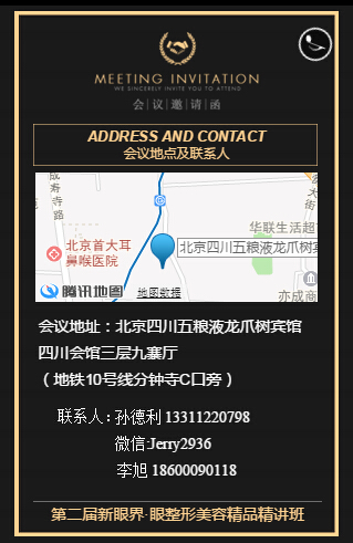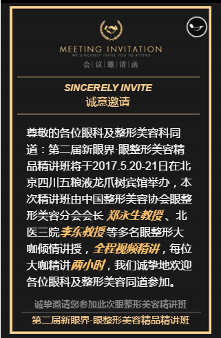 新闻中心 您的当前位置:首页 > 新闻中心 > 第二届新眼界眼整形美 第二届新眼界眼整形美容精品精讲班----------------------2017-04-13 发布时间:2017-04-13 来源: 作者: 原文链接(易企秀内含论坛报名页) 更多新闻请点击: http://www.yanke360.com/news/