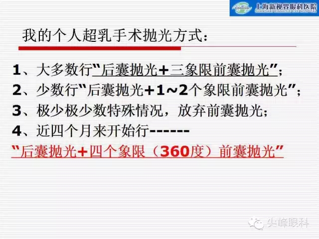 4、近四个月来开始行“后囊抛光+四个象限(360度)前囊抛光”。