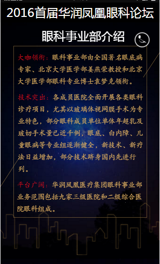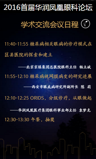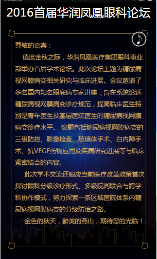 2016首届华润凤凰眼科论坛——糖尿病视网膜病变学术交流会-----------------------------------------------------------2016-10-19