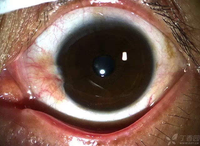 这是术后3周时复查,角膜透明无翳,结膜无疤痕。