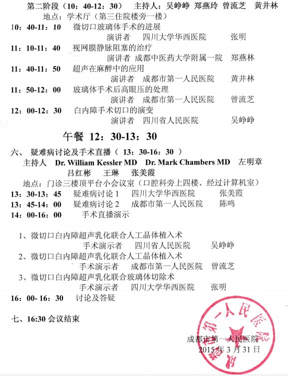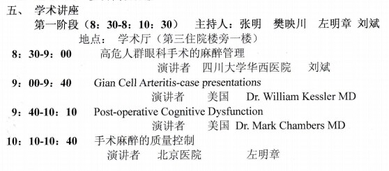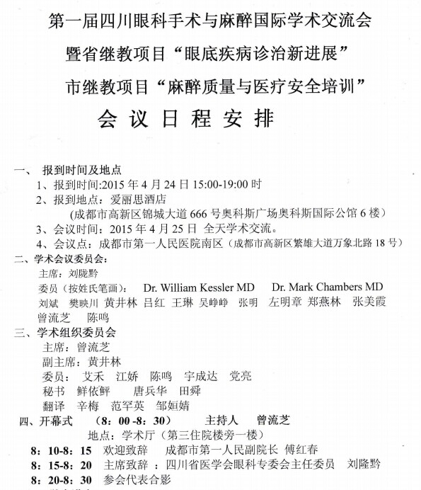 新闻中心 您的当前位置:首页 > 新闻中心 > 第一届四川眼科手术与 第一届四川眼科手术与麻醉国际学术交流会暨省继教项目“眼底疾病诊治新进展”市继教项目“麻醉质量与医疗安全培训”会议日程安排----------------------------2015-04-15 发布时间:2015-04-15 来源: 作者: 更多新闻请点击:http://www.yanke360.com/news/