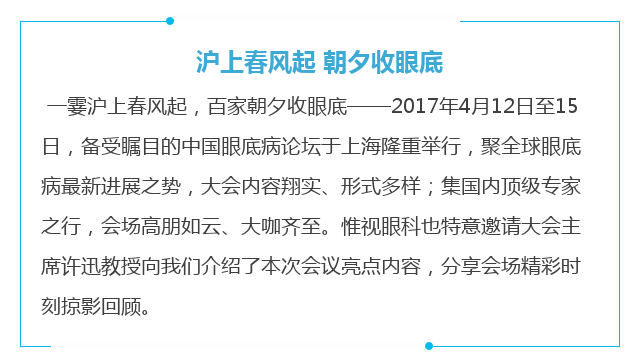 许迅主席:一霎沪上春风起 百家朝夕收眼底—2017年中国眼底病论坛精彩掠影----------------------2017-04-18