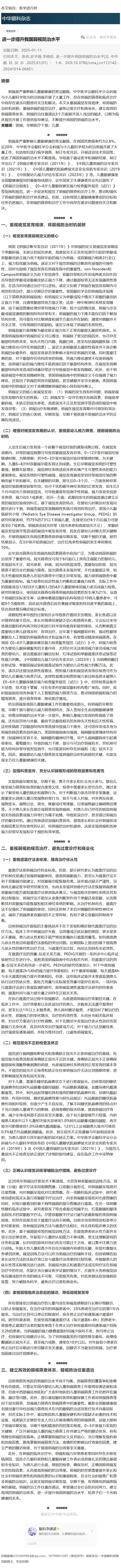 【中华眼科杂志】进一步提升我国弱视诊治水平---2026.1.14 发布时间:2026-01-14 来源: 作者: