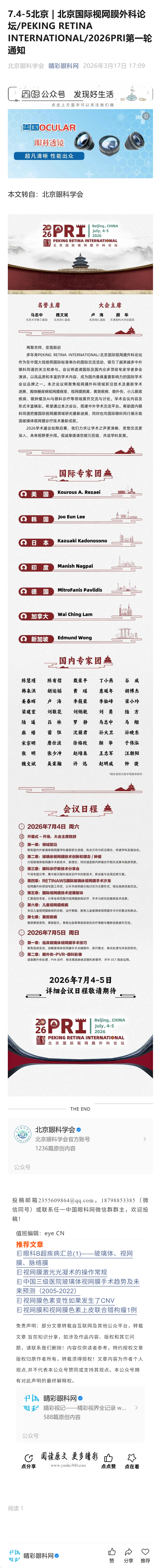 新闻中心 您的当前位置:首页 > 新闻中心 > 7.4-5北京 | 北京国际 7.4-5北京 | 北京国际视网膜外科论坛/PEKING RETINA INTERNATIONAL/2026PRI第一轮通知------2026-3-17 发布时间:2026-03-17 来源: 作者: