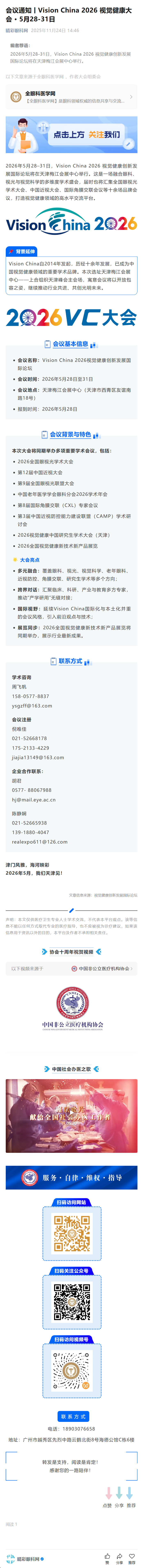新闻中心 您的当前位置:首页 > 新闻中心 > 会议通知丨Vision Chi 会议通知丨Vision China 2026 视觉健康大会 · 5月28-31日-------2025-11-24 发布时间:2025-11-24 来源: 作者: 原文链接