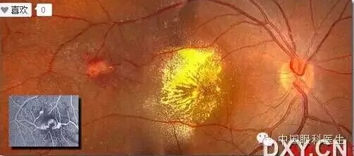Leber粟粒样血管瘤 (leber's miniary aneurysms ): 其实就是Coat's病,发生在后极部的Coat's病轻症型。水肿与脂质沉积因重力作用常聚集于黄斑区。