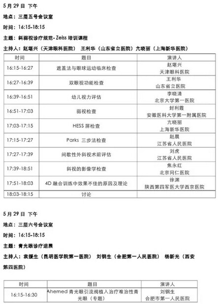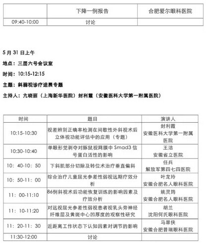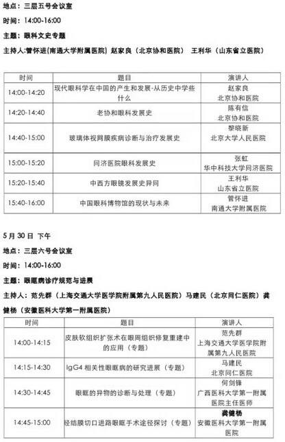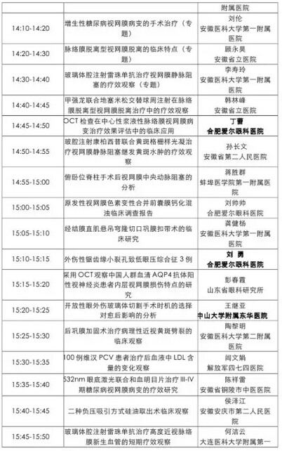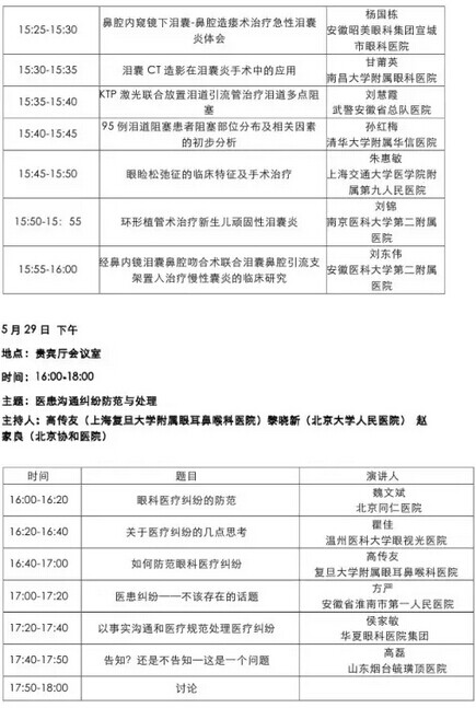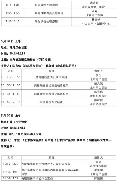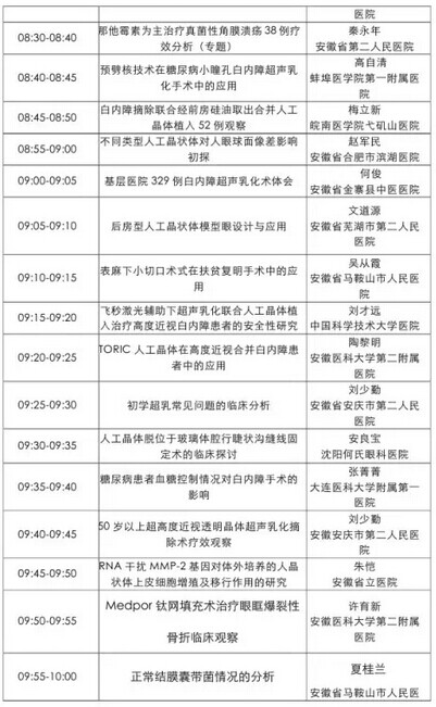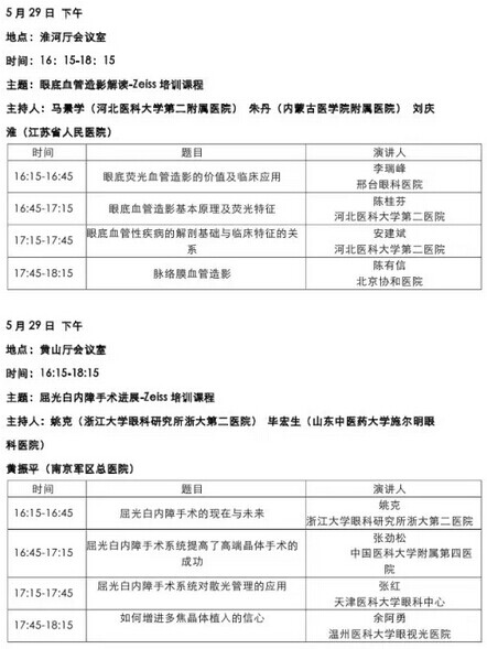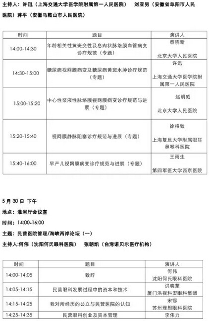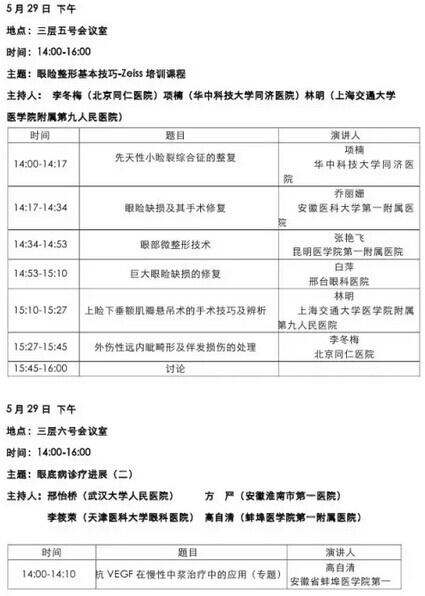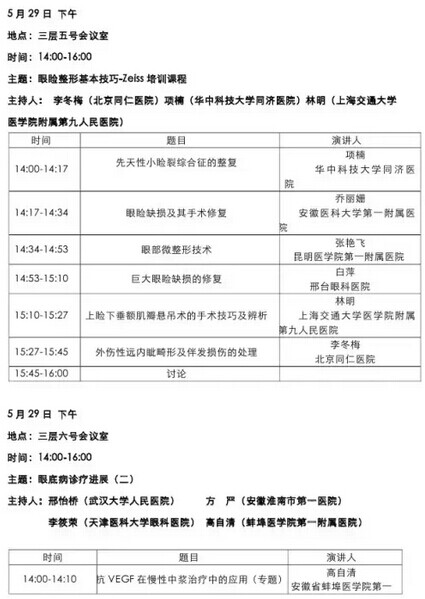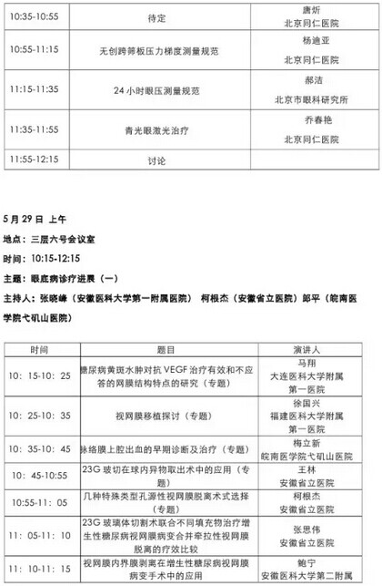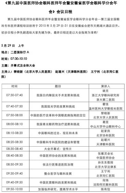 《第九届中国医师协会眼科医师年会暨安徽省医学会眼科学分会年会》会议日程--------------------2015-05-28