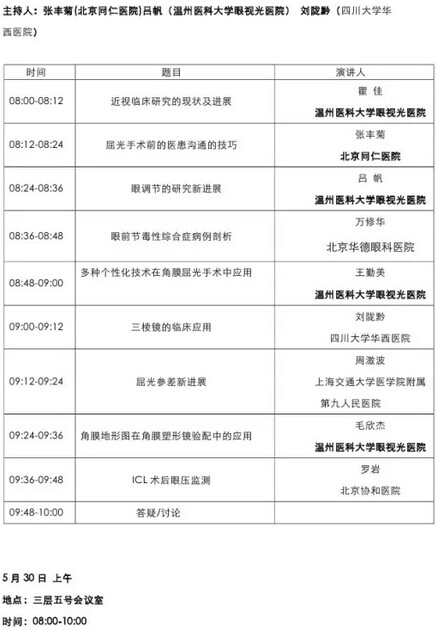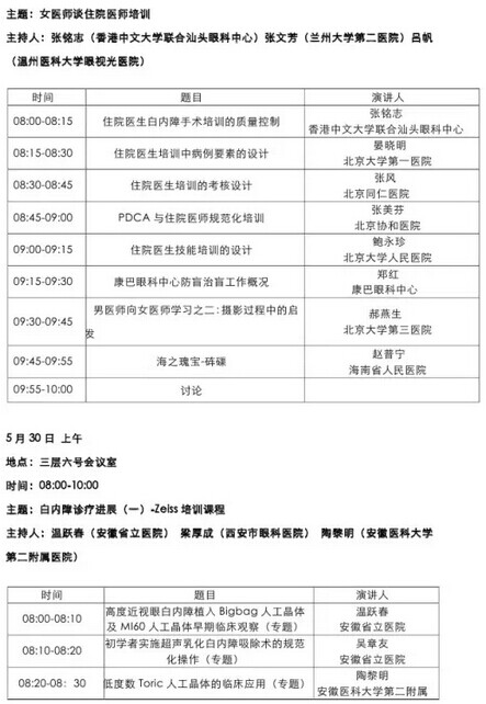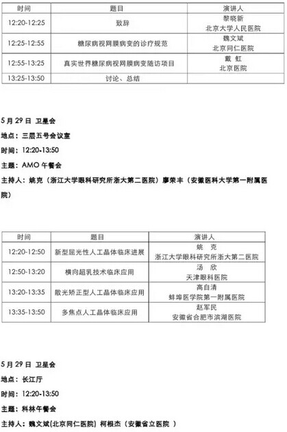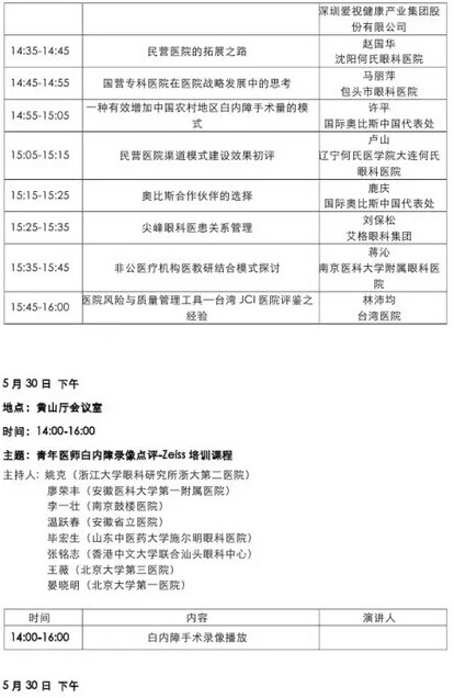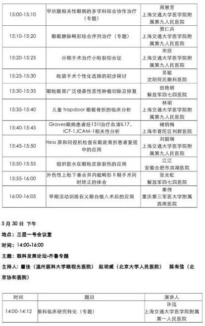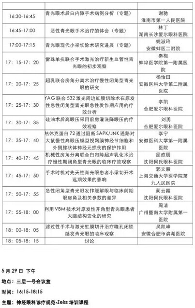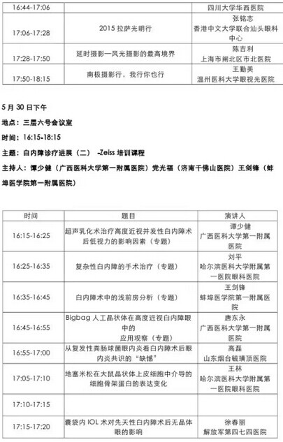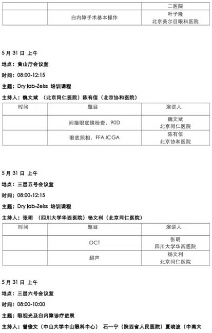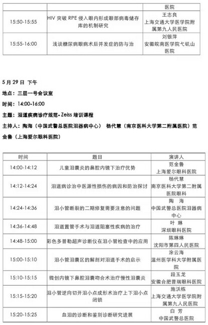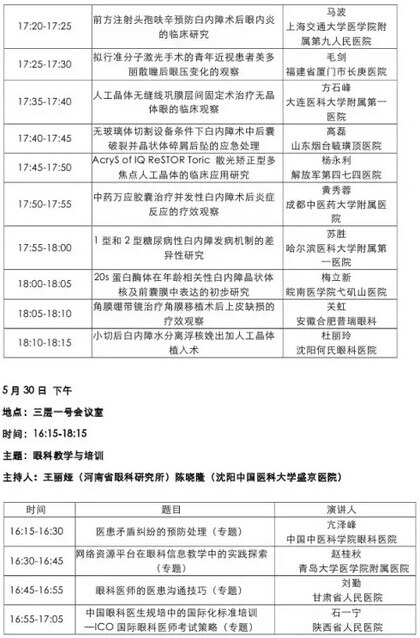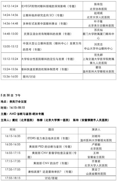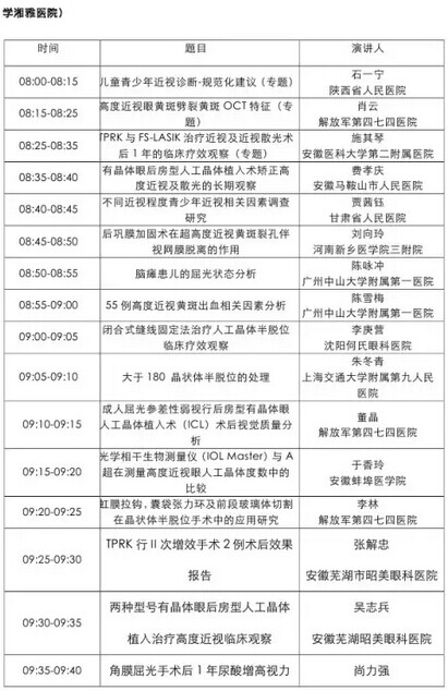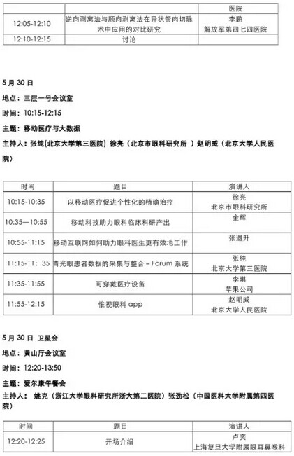 《第九届中国医师协会眼科医师年会暨安徽省医学会眼科学分会年会》会议日程--------------------2015-05-28