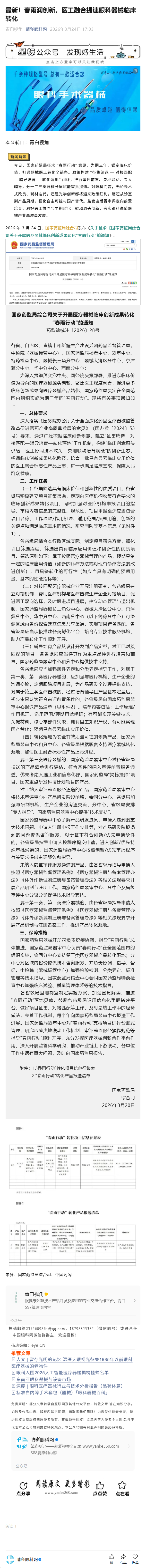 最新!春雨润创新,医工融合提速眼科器械临床转化------2026-3-24