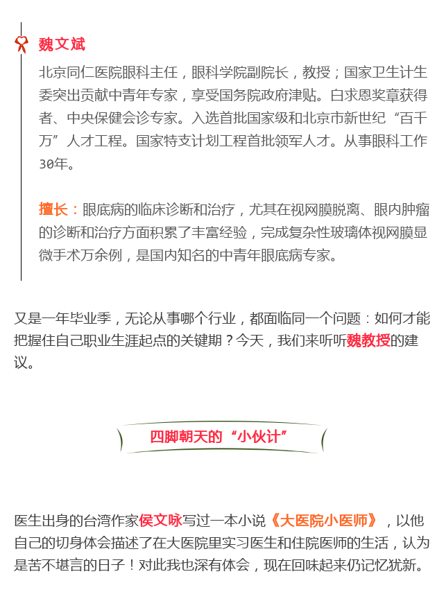 新闻中心 您的当前位置:首页 > 新闻中心 > 同仁医院魏文斌教授: 同仁医院魏文斌教授:住院医——「我的前半生」----------------------2017.08.25 发布时间:2017-08-25 来源: 作者: 原文链接 更多新闻请点击: http://www.yanke360.com/news/